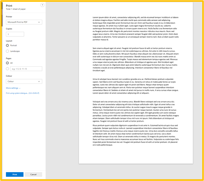 Click ‘Print’ after selecting your printer, layout and colour options.