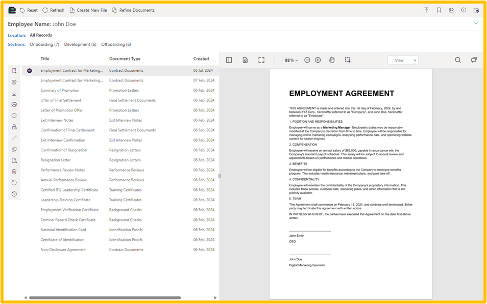 In this article, screenshots will follow the example of an employee record context. All steps outlined below will be relevant for your context.