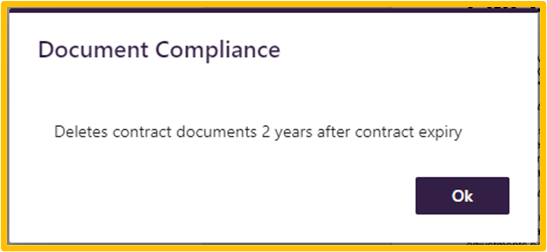A pop-up box will display with information about the compliance relevant to the document selected.