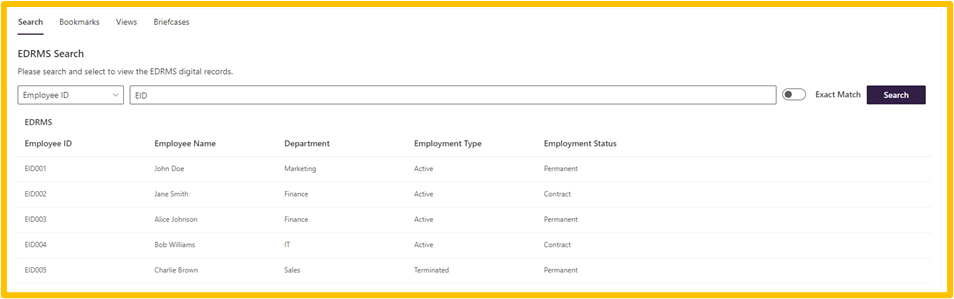 Search for the record you are looking for using search, bookmarks, views or briefcases.