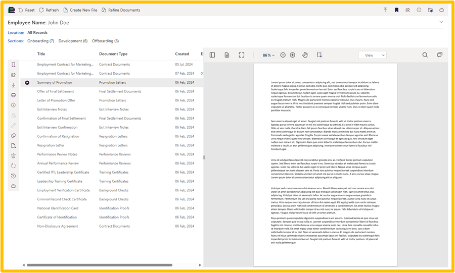 In this article, screenshots will follow the example of an employee record context. All steps outlined below will be relevant for your context.