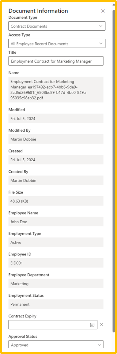 Not all properties are available to edit on the document, it is dependent on the context of the record that has been setup by your organisation. Properties that cannot be edited will be grey.