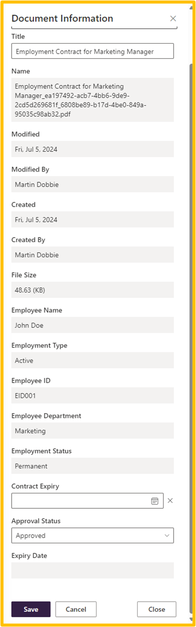 Once you have completed changes to the document properties, click the ‘Save’ button.